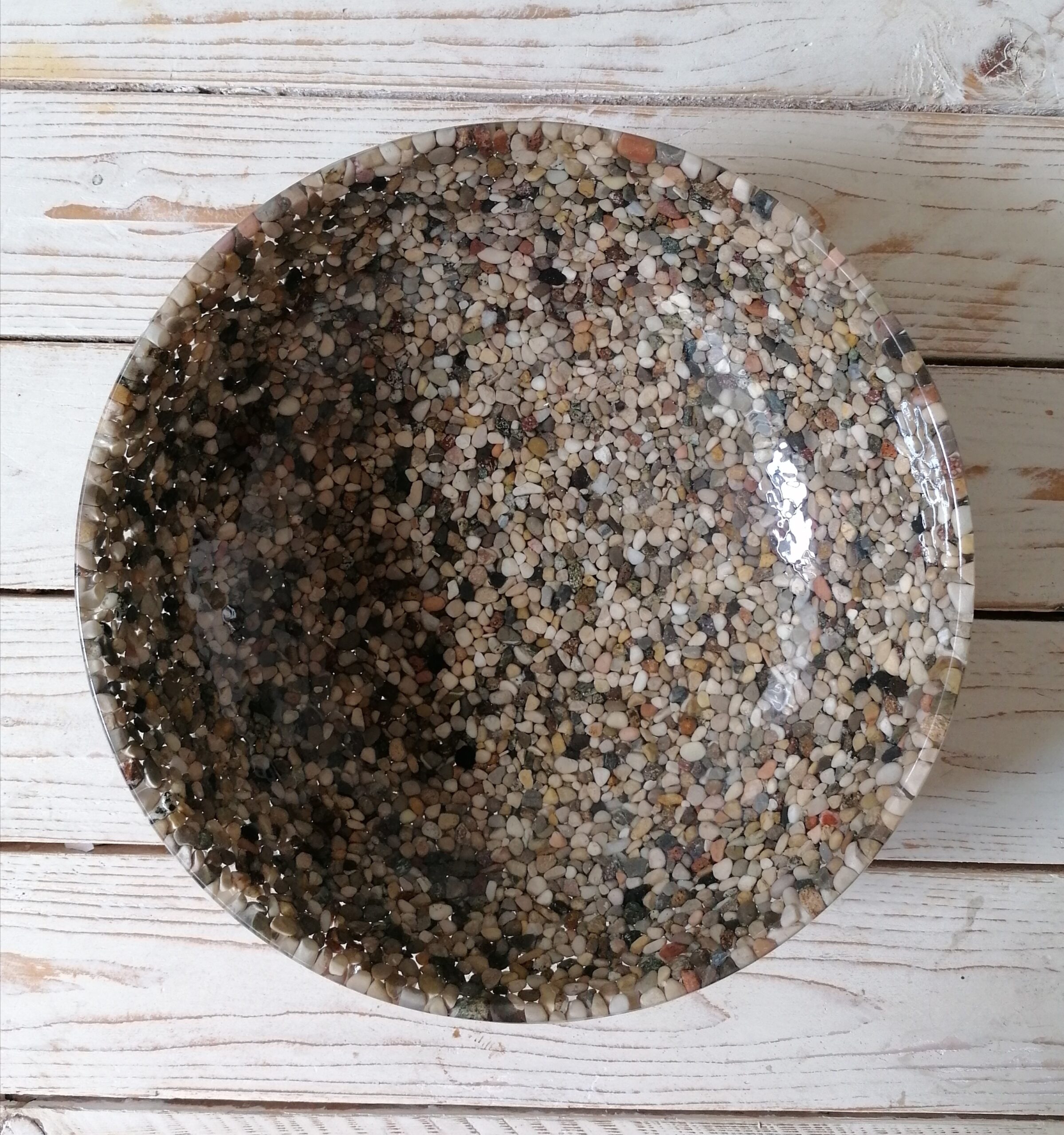 Al suo interno sono inclusi piccoli sassi di fiume. Ideale come Centrotavola.