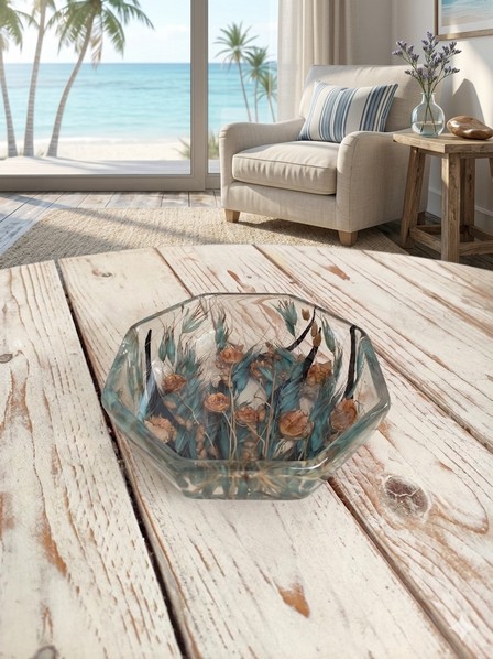 Ciotolina ottagonale con elementi naturali al suo interno. Ideale come Svuotatasche, Porta bon bon, Pot pourri, accessori bagno